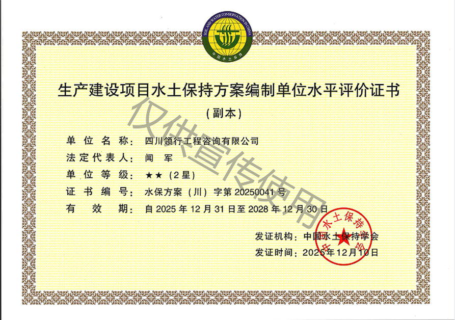 水土保持方案編制單位水平評價(jià)證書2星